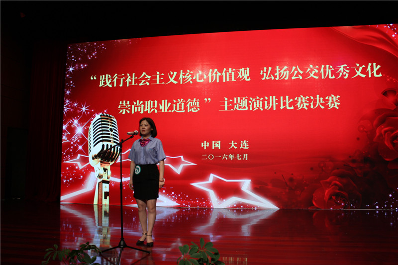 7月22日,我公司職工王培榮參加了全國城市公交“踐行社會主義核心價值觀,弘揚公交優(yōu)秀文化,崇尚職業(yè)道德”主題演講比賽,并獲得優(yōu)秀獎。之前,王培榮通過層層選拔,分別榮獲公司演講比賽第一名、華東賽區(qū)演講第四名,最終贏得全國公交演講比賽資格,在比賽中展示了徐州公交員工良好的精神風(fēng)貌,其精彩的演講風(fēng)格受到評委和公交同行的贊譽。