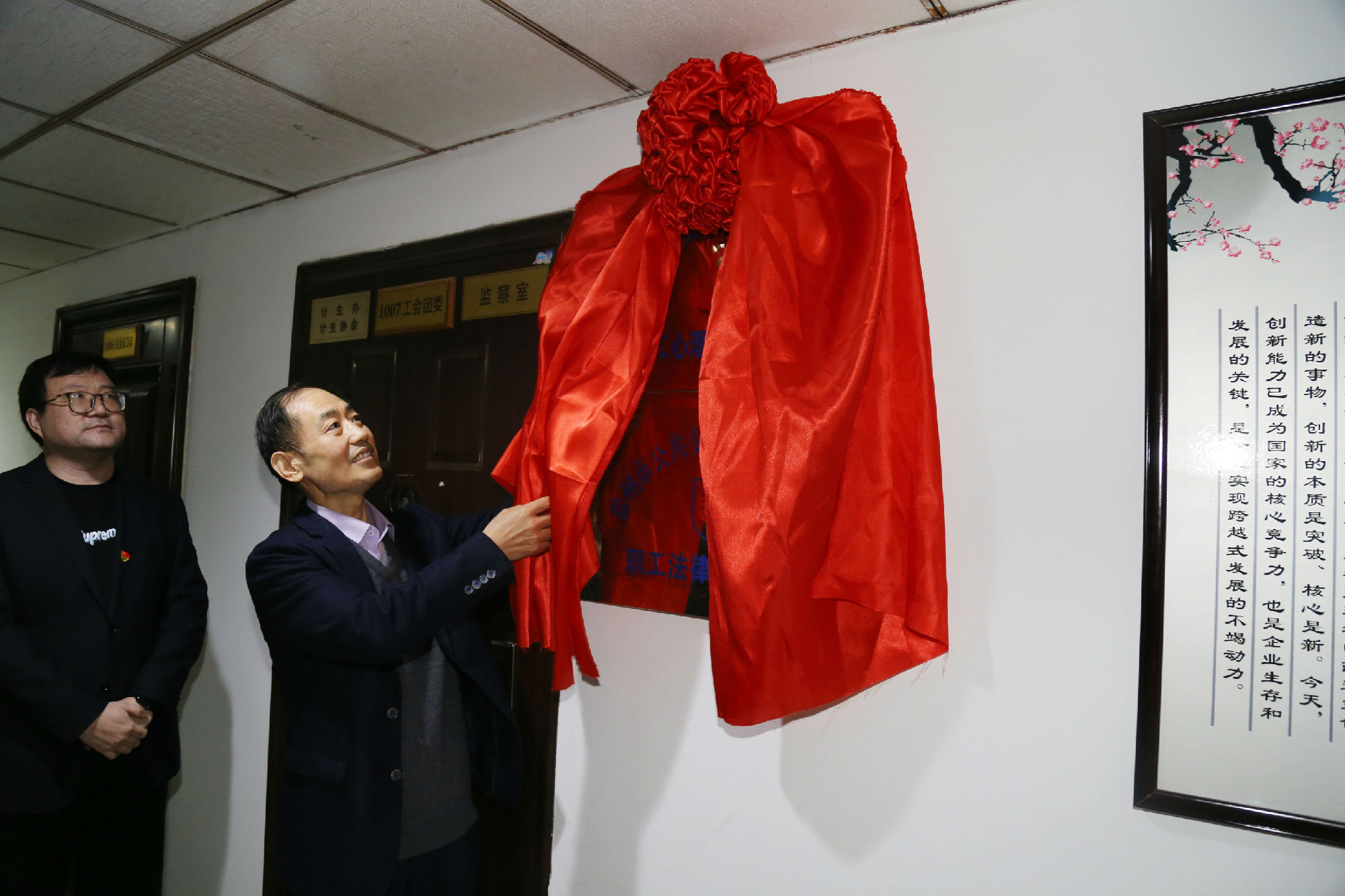 為進一步落實公交家文化建設工程,幫助職工維護自身合法權益,關注職工心理健康,推動創(chuàng)建幸福和諧企業(yè),31日上午,徐州公交集團職工法律援助中心、職工心理健康疏導中心在公交大廈10樓掛牌成立。集團黨委書記、董事長高守江,紀委書記、工會主席袁夫松現(xiàn)場揭牌。
