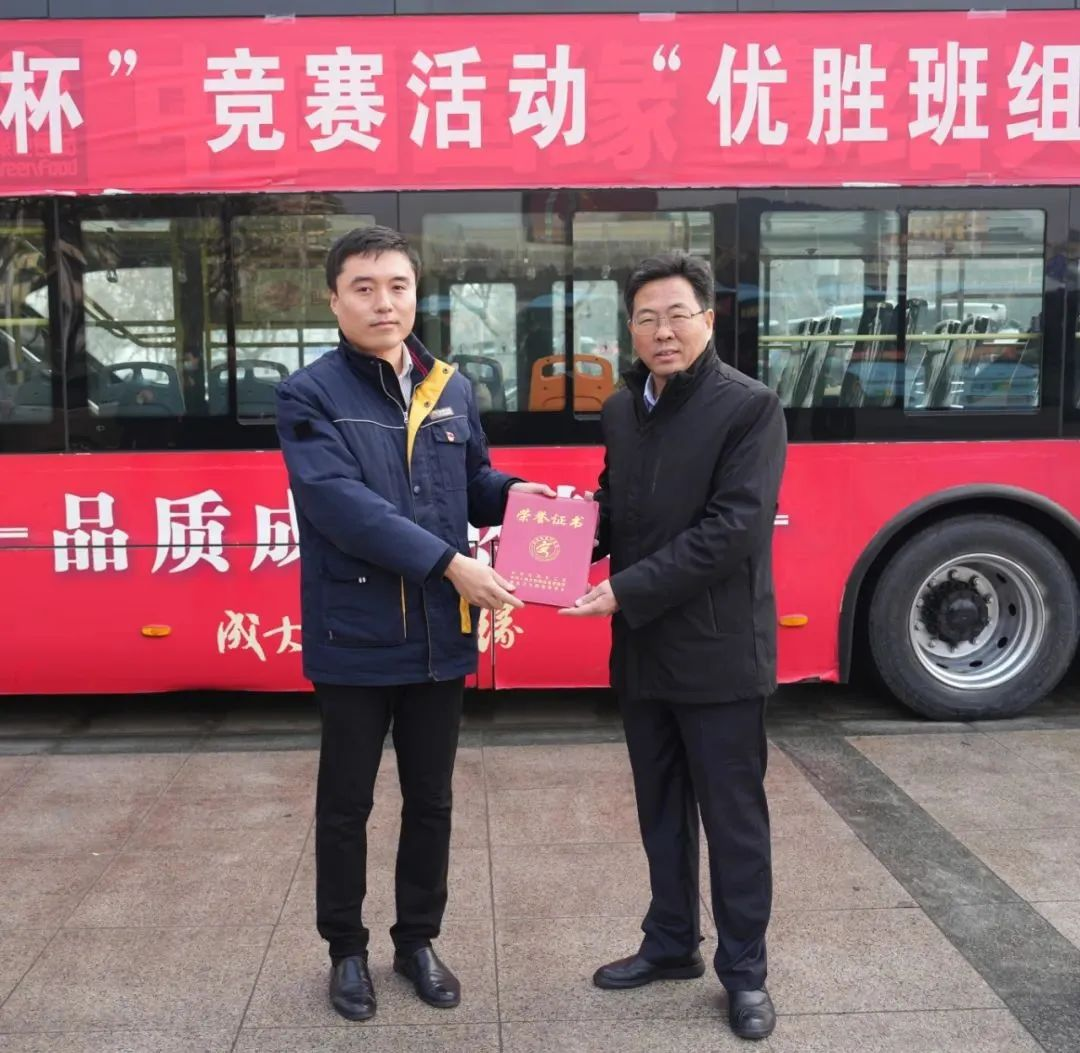 27日,江蘇省總工會勞動和經(jīng)濟(jì)工作部副部長董雷到徐州公交集團(tuán)為全國安康杯競賽優(yōu)勝班組1路線授牌。市總工會黨組成員、副主席王建民,市總工會勞動和經(jīng)濟(jì)工作部部長單昊,市交控集團(tuán)黨委委員、紀(jì)委書記胡濤,市交控集團(tuán)群眾工作部部長、工會副主席、團(tuán)委書記周靜及公交集團(tuán)黨委副書記、紀(jì)委書記、工會主席竇同銀陪同參加授牌儀式。