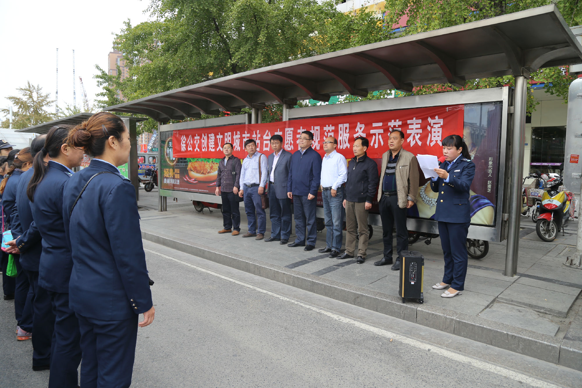 為進一步規(guī)范站臺服務(wù)引導工作,不斷推動文明城市創(chuàng)建順利進行,10月9日上午,公司在徐州站主廣場舉行了一次公交站臺秩序規(guī)范服務(wù)示范表演。團市委副書記夏友峰、運管處客運科科長陳福升、以及市創(chuàng)建辦交通秩序二組三位領(lǐng)導蒞臨觀摩。服務(wù)督導隊34名站臺志愿者參加了示范表演。