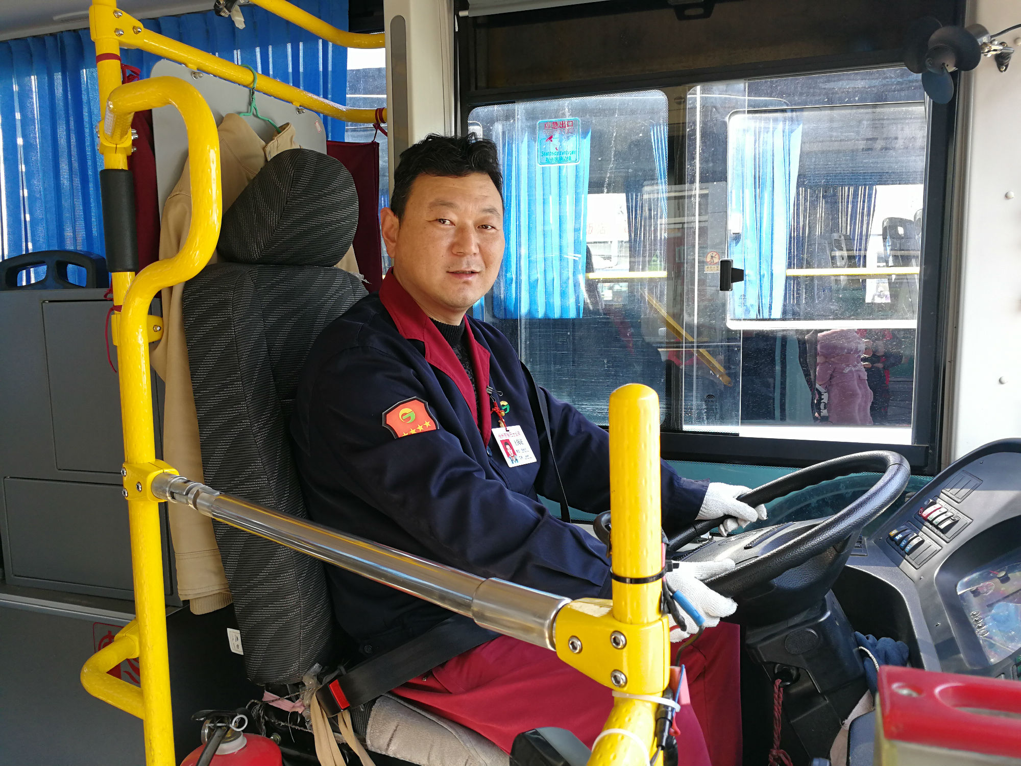汽車南站,人流擁擠,專一線路的客流明顯增多,拎著大包小行李回家過年的外地乘客比例也明顯增加。“大家注意安全,不要擁擠,請排隊乘車”。專一路四星級駕駛員王旭微笑著引導(dǎo)乘客乘車,在他的耐心疏導(dǎo)下,乘客們排隊上車、秩序井然。“車輛起步,請大家拉好扶手,保管好自己的行李物品”。車輛行駛至農(nóng)副產(chǎn)品市場,一位70多歲的大媽拉著手推車準(zhǔn)備上車,王旭立即幫大媽把手推車搬到車上放好并鼓勵車內(nèi)乘客為老人讓座,安排好老人后,他才平穩(wěn)起步行車?!靶熘菡荆ㄋ{(lán)天)到了,請到火車站、汽車總站的乘客下車,拿好您的行李物品,祝您一路平安”!王旭細(xì)心地提醒乘客。“師傅,火車站怎么走?”一位外地乘客詢問,“下了車,您往前走,過兩個紅綠燈,您就看到火車站了?!蓖跣衲托牡亟獯?。行駛至終點站,王旭走到拿著重物的大媽身邊,微笑著說:“大媽,我來幫您拿下去吧,您慢點下車”,大媽十分感激,從包里拿出一個蘋果塞給王旭,說道:“小伙子,你人真好,服務(wù)態(tài)度熱情,你一定要拿著這個蘋果,希望你新的一年平平安安?!蓖跣裥睦锱?,在他看來,他只是做了自己該做的事情,卻收獲了乘客的溫暖祝福。