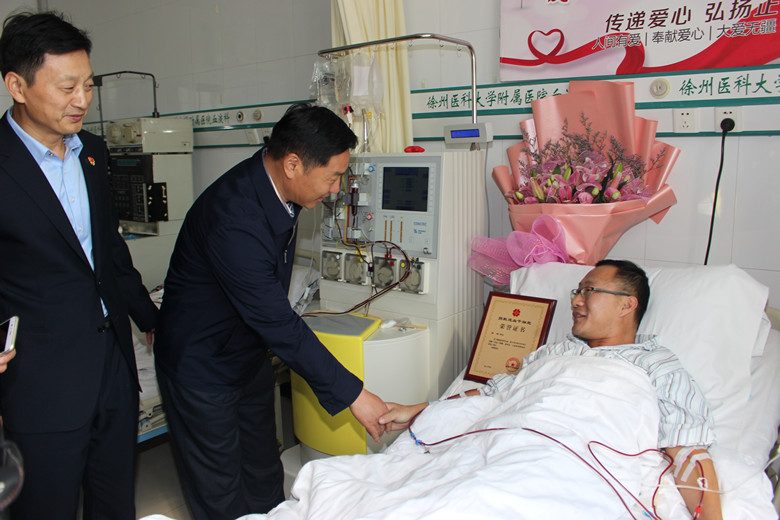 自7月底接到通知的這段時間,鄭剛一直積極配合著,希望保持最佳的身體狀態(tài)進行捐獻。他努力克制自己,戒煙戒酒,鍛煉身體,增加高營養(yǎng)的飲食調理。喝不慣牛奶的他甚至強迫著自己一天喝兩包奶。國慶節(jié)幾天,他突然感冒發(fā)低熱,竟忍著沒敢吃藥……鄭剛所在的單位也給予了大力的支持和配合,10月25日入院,徐州公交為他舉辦了隆重的歡送儀式,董事長、總經理杜紅軍等領導給他送來了慰問金,安排好他的休息時間。