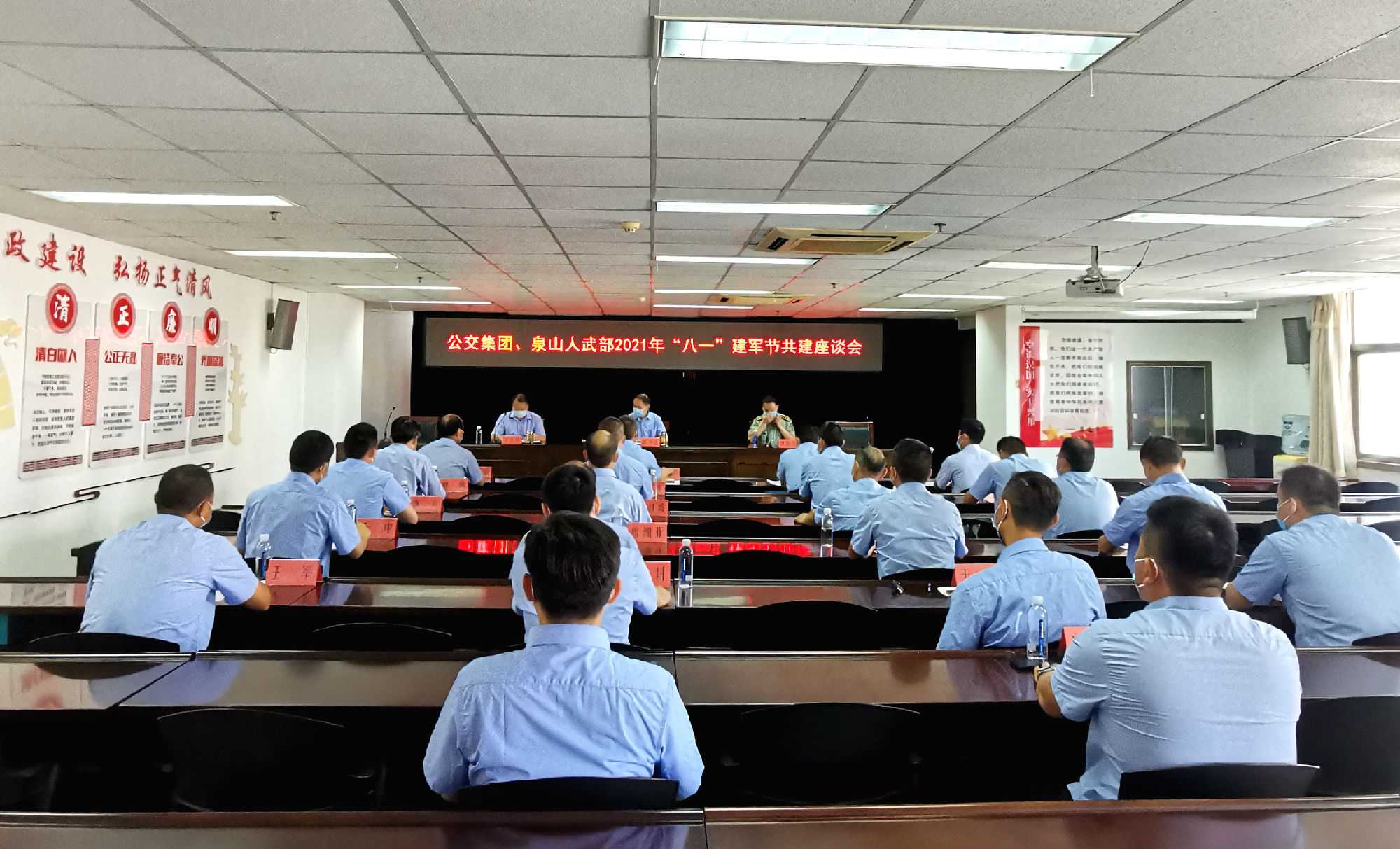 接著,劉海濤對(duì)人武部的工作以及取得的優(yōu)秀成果進(jìn)行了總結(jié),并對(duì)公交退役軍人在平凡的崗位上一直保持著軍人本色和認(rèn)真負(fù)責(zé)的工作態(tài)度表示了高度贊揚(yáng)。
