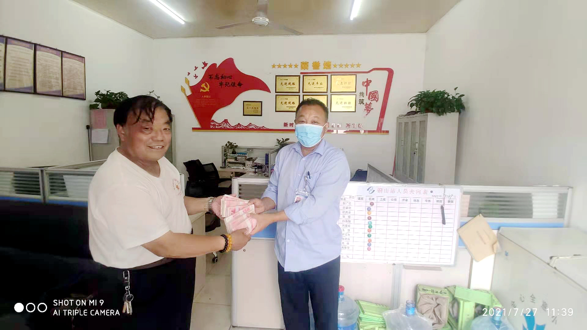 耿站長在調(diào)取車輛監(jiān)控錄像后發(fā)現(xiàn),遺失布包的乘客從張集上車,在汽車南站下車時將紅色布包忘在了車上。就在耿站長準備撥打110報警電話求助時,一男子急匆匆地來到辦公室,稱他的包遺忘在83路公交車上,里面有好多現(xiàn)金,請車站工作人員幫忙查一下。在通過監(jiān)控比對、身份證驗證及失主敘述后,耿站長拿出紅色布包請張先生確認,張先生非常激動,連聲道謝,稱贊公交駕駛員拾金不昧的精神。