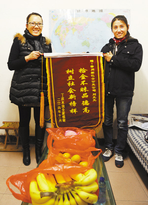 8路車駕駛員劉元元拾到萬余元現(xiàn)金還失主,失主專程送來錦旗致謝