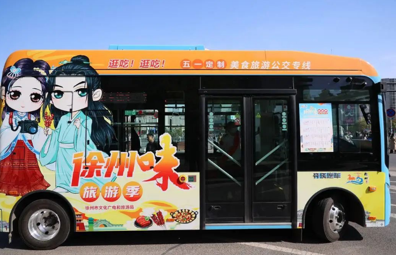 “我就是想來徐州吃美食,這車裝飾得還挺好看的,把徐州的特色美食都貼在車上了,一目了然,讓我們外地游客上車就能了解到徐州美味?!?月30日,在徐州高鐵站公交站,上來了幾個(gè)拿箱子的乘客說道。走進(jìn)“美食徐州”主題車廂,映入眼簾的就是車廂兩側(cè)那讓人垂涎欲滴的徐州特色美食,燒烤、地鍋雞、羊方藏魚、東坡回贈肉、把子肉、饣它湯+八股油條、烙饃卷馓子、辣湯+煎包......各色菜肴在徐州又有了自己別樣的風(fēng)味,承載了特別的感情,游客們可乘坐公交走遍徐州小巷,嘗遍徐州美味。下一步,徐州公交集團(tuán)將繼續(xù)以打造“公交+文旅”品牌線路為契機(jī),推出資源特點(diǎn)突出,服務(wù)特色鮮明的主題車廂,不斷滿足市民差異化出行需求,讓更多的人享受更好的公共出行服務(wù)。徐州公交集團(tuán)相關(guān)負(fù)責(zé)人表示,徐州美景養(yǎng)眼、徐州美食誘人,希望通過旅游美食公交線路,將城區(qū)的點(diǎn)串珠成鏈,打造出一道徐州城市的流動風(fēng)景線,進(jìn)一步推動“交通+美食+旅游”深度融合,擦亮徐州名片。