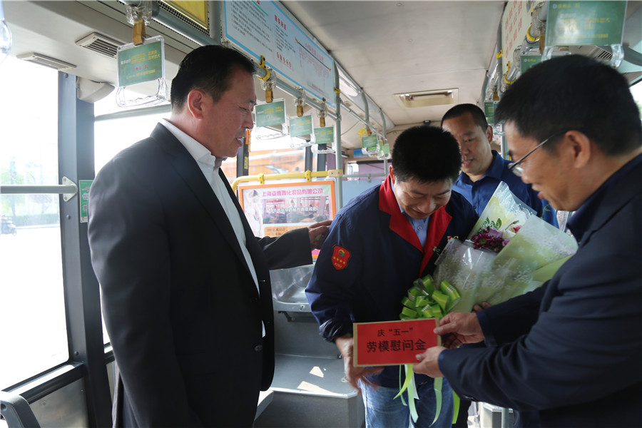 為更好地弘揚(yáng)勞模和工匠精神,體現(xiàn)對(duì)勞模的真切關(guān)懷,倡導(dǎo)全公司尊重勞模、學(xué)習(xí)勞模、爭(zhēng)當(dāng)勞模,4月27日上午,在“五一”國(guó)際勞動(dòng)節(jié)到來之際,公司董事長(zhǎng)、總經(jīng)理杜紅軍,常務(wù)副總經(jīng)理蔣成彪,副總經(jīng)理丁玉華、袁林、李修超、馮陸陸,工會(huì)主席竇同銀等領(lǐng)導(dǎo)分成三組,到運(yùn)營(yíng)一線把鮮花和慰問金送到王博等7名公司勞模先進(jìn)手中,并向他們提前送去節(jié)日的問候。