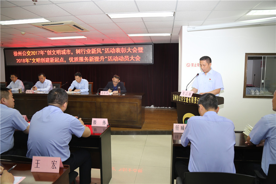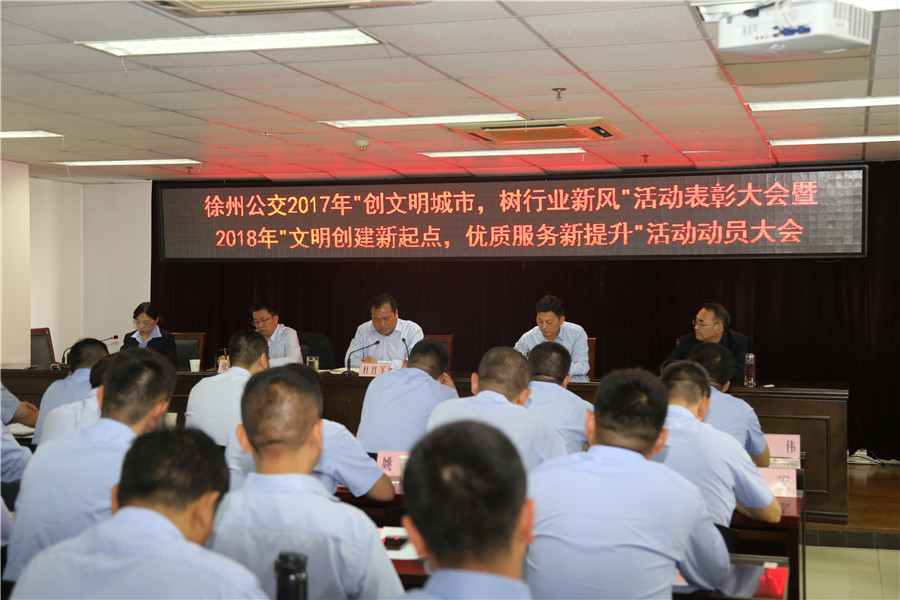 最后,公司董事長、總經理杜紅軍作重要講話,對2017年文明城市創(chuàng)建工作進行了總結,對公交廣大干部員工在創(chuàng)建中的辛勤付出和取得的成績給予了充分肯定。同時,分析了目前的創(chuàng)建形勢,提出了新時期工作要求。他強調:各單位要不斷總結創(chuàng)建經驗,用制度鞏固好已有的創(chuàng)建成果;要營造良好氛圍,用核心價值觀帶動行業(yè)文明新風;要深化創(chuàng)建內涵,用優(yōu)質服務打造公交文明新亮點。要以全國文明城市創(chuàng)建成功為契機,以常態(tài)長效為目標,努力打造溫馨公交、安全公交、便捷公交、智慧公交,以高質量服務,實現(xiàn)群眾滿意;以高標準要求,優(yōu)化公交形象,在流動的車廂傳播精神文明,譜寫出新時期公交行業(yè)文明創(chuàng)建的動人樂章,為加快建設“強富美高”新徐州交出公交人的滿意答卷!