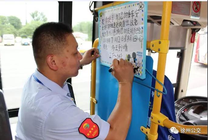 原來他已養(yǎng)成了習(xí)慣,在他的駕駛室后方掛著一塊白板,寫著乘車的溫馨提示語和天氣情況。每天他都會記錄下當(dāng)天的天氣情況:“為了您的乘車安全,請不要隨意更換座位。感謝您的支持!2018年7月12日星期四,多云到晴,27~34攝氏度”,“特別是老年人、孩子,開車時換位子太危險了?!毖λ山忉尩馈?/span>