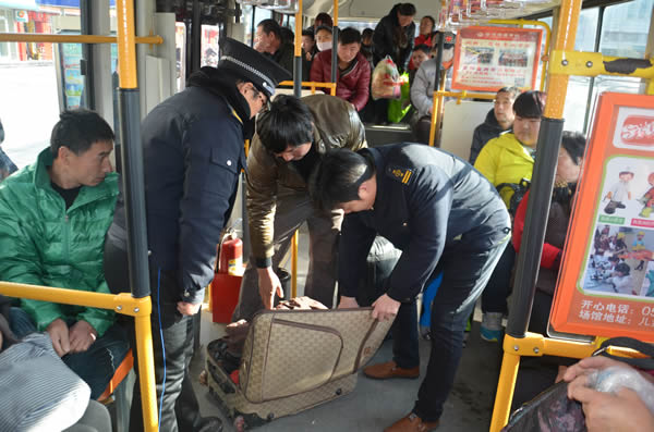 122日,在第三個全國交通安全日來臨之際,公交服務督導隊聯(lián)合公安公交管理大隊開展了危險品大檢查。檢查組分為5個小隊,分別在火車站廣場、副廣場,東甸子公交站臺,對公交車乘客攜帶物品進行仔細檢查,確保公交乘客安全。