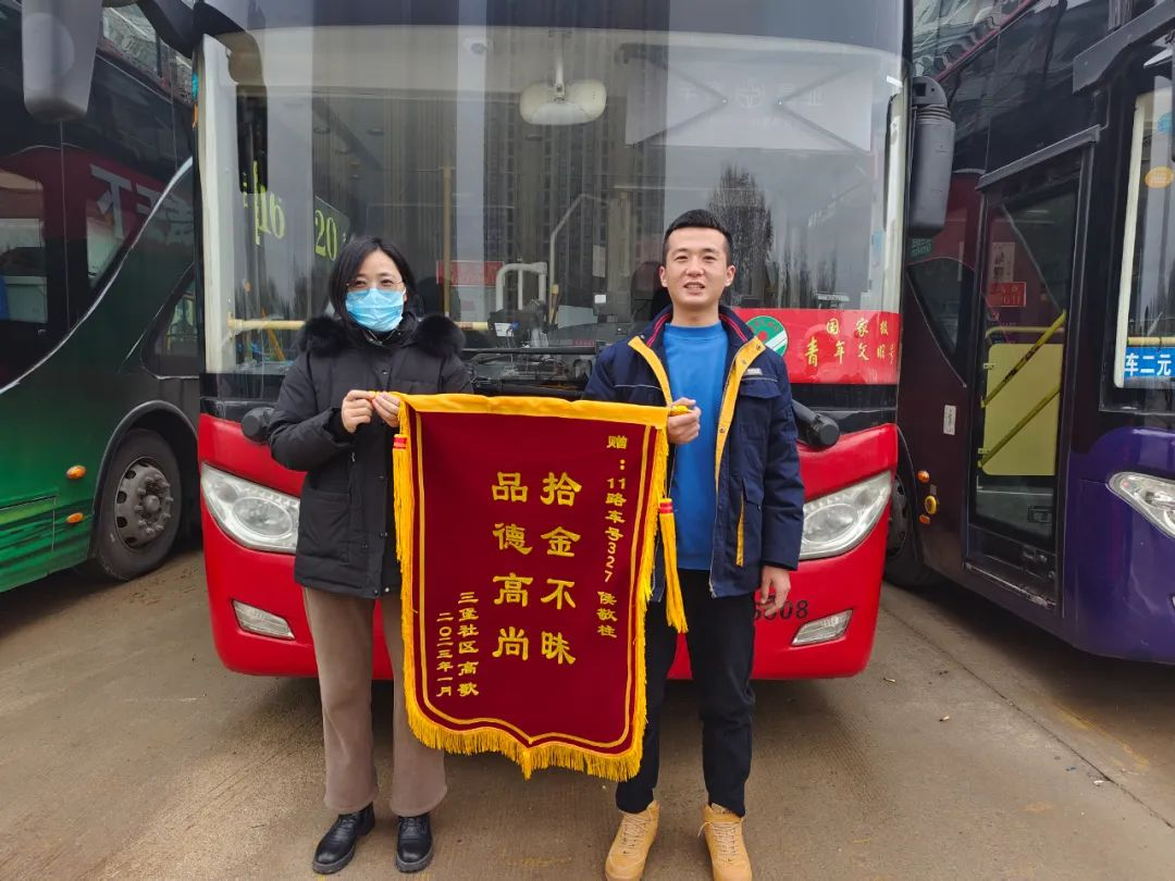 1月19日,失主郭女士通過(guò)公交集團(tuán)熱線電話聯(lián)系到車(chē)隊(duì)管理人員,經(jīng)過(guò)車(chē)隊(duì)的查詢(xún)落實(shí)后,郭女士與工作人員約好時(shí)間前來(lái)取回失物。1月20日,郭女士送來(lái)了一面錦旗錦旗,并撥打了熱線電話12345表?yè)P(yáng)駕駛員王怡拾金不昧的精神。王怡熱心助人的行為充分體現(xiàn)了徐州公交駕駛員高尚的道德品質(zhì),他用實(shí)際行動(dòng)體現(xiàn)了 “向善、向美、向上”的價(jià)值追求,在平凡的崗位上傳遞公交正能量。